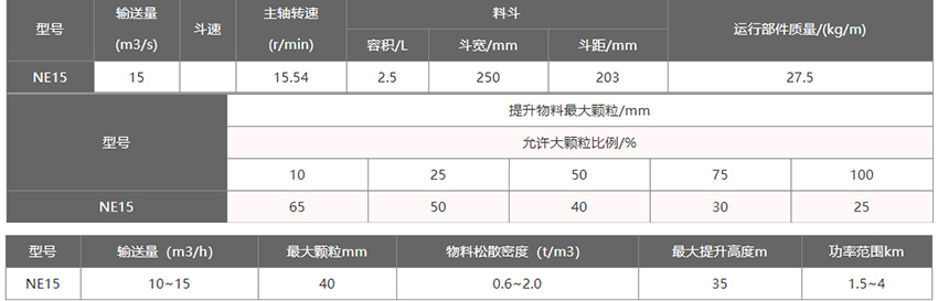 ne15斗式提升机料斗长250mm,板厚3mm,容积约2.5L,每小时提升量为15立方,ne15斗式提升机采用板式链条,耐磨性强,适合垂直提升粉状及块状物料.