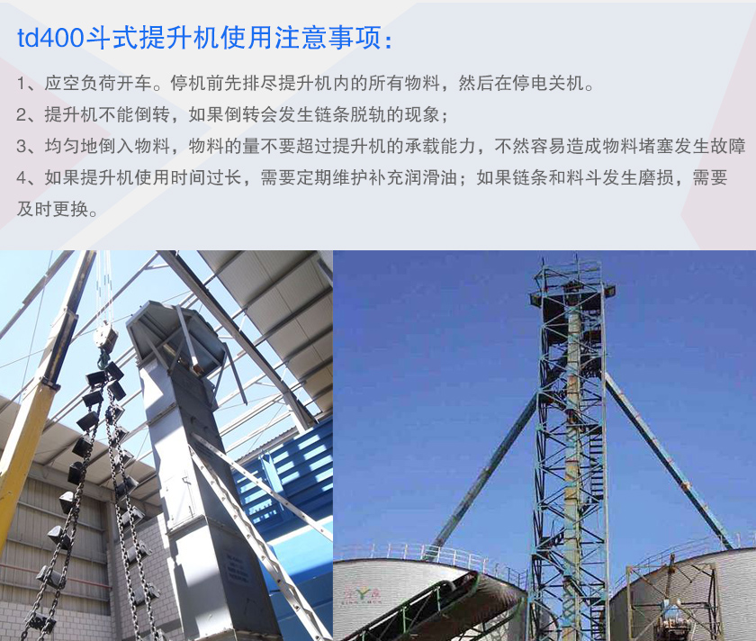 4、如果提升机使用时间过长,需要定期维护补充润滑油;如果链条和料斗发生磨损,需要及时
