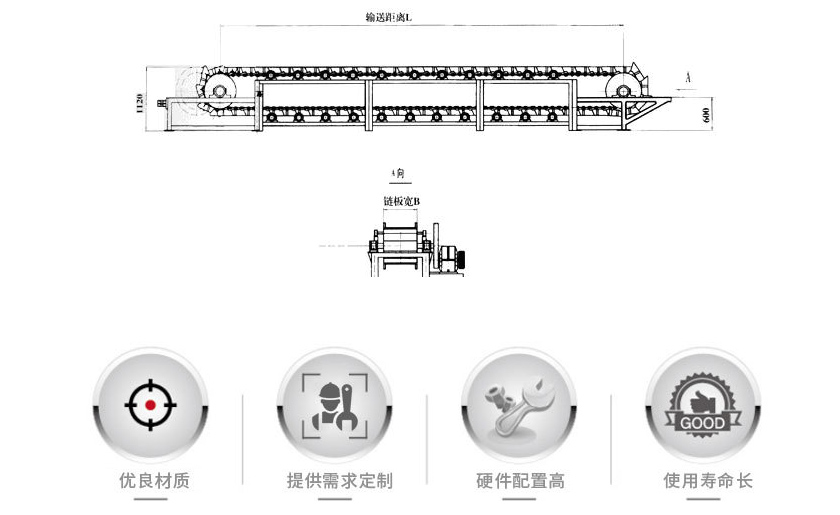 链条:板式链条做牵引件,运行平稳,维修率低。