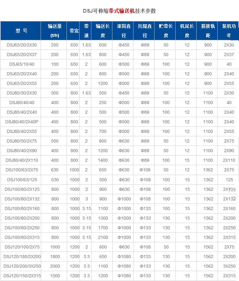 伸缩式输送机即伸缩式皮带,可以根据工作面位置变化调整自身长度的输送机,伸缩式输送机可在长度方向上自由伸缩,自由调控输送长度,减少了装卸货物的时间,降低了工人的劳动强度,可用于输送粉状、粒状物料输送.