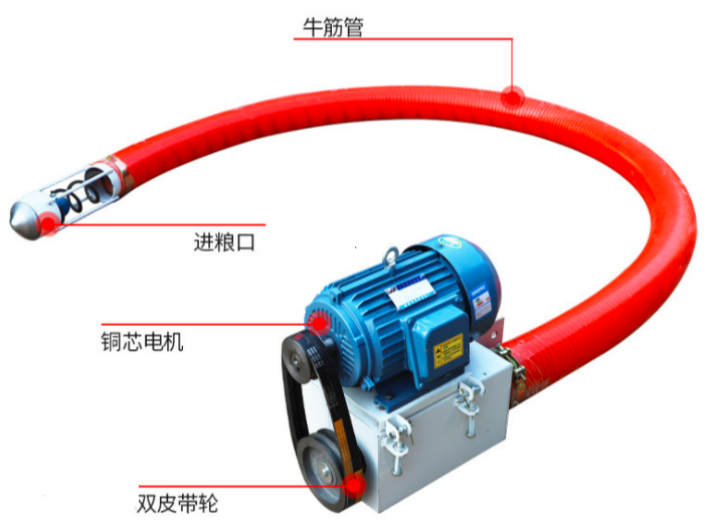 绞龙吸粮机的结构围绕 吸送顺畅、防堵耐磨 设计,核心由五大部件组成,各部件协同保障输送稳定。