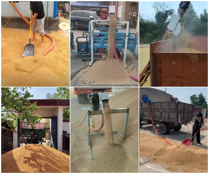 田间收粮:中小型移动款适配农户或合作社,可将晾晒后的粮食从粮场直接吸入粮囤,或装入运输车辆,避免人工扛运的劳累与损耗。