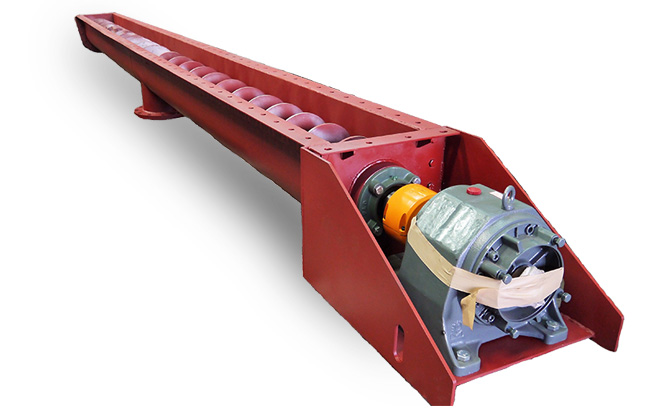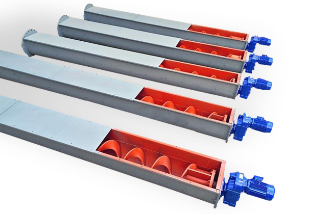 U型螺旋输送机工作时,电机带动旋转的螺旋叶片将物料推移而进行输送,螺旋输送机旋转轴上焊的螺旋叶片,叶片的面型根据输送物料的不同有实体面型、带式面型、叶片面型等型式。使物料不与螺旋输送机叶片一起旋转的力是物料自身重量和螺旋输送机机壳对物料的摩擦阻力。