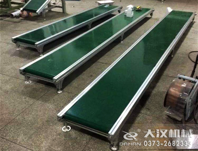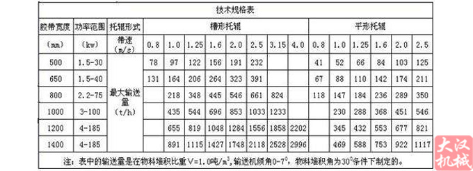 水平皮带输送机按其支架结构有固定式、移动式两种:按输送带材料有胶带、塑料带和钢芯带之分。皮带输送机的工作环境温度一般在-10°C--+40°C之间,要求物料温度不超过70°C;耐热橡胶带可输送120°C以下的高温物料。物料温度更高时不宜采用胶带输送机。当输送具有酸性碱性油类物质和有机溶剂等成分的物料时,需采用耐油、耐酸碱的橡胶带式塑料带。带式输送机的带宽可分为:500、650、800、1000、1200和1400mm。用户可根据带式输送机的输送长度,物料的种类、容重、输送量、输送长度等诸因素通过计算确定输送机的布局以及所选用的胶带宽度、帆布层数和胶带厚度。