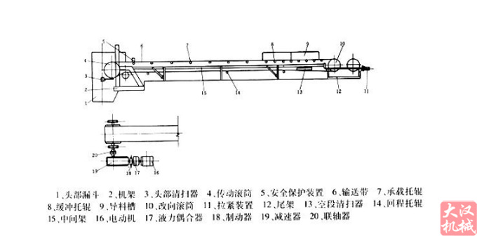 3.托辊部分:分槽形、平行、调心和缓冲托辊等。