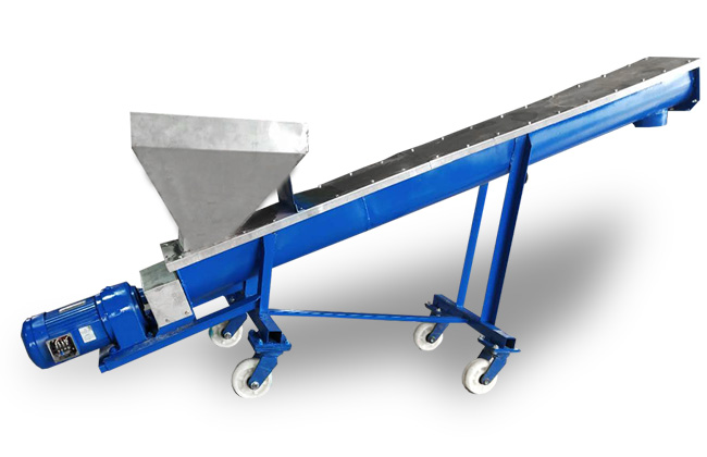 1-90°的大角度螺旋输送机都有,角度是90°,但角度越大,速度就要越快。速度快了,功率相应也要加大的选用的型号不同倾角不同。还可以前面加段水平螺旋,我们做垂直90度的,但同一个螺旋输送机,角度越大,输送能力相应越下降。这个不止要考虑转速的提高,还要考虑物料受离心力的作用附着在外壳上,转速是有上限的,就是螺旋的升力有限,高了就不行了。另外,螺旋给料机可以做多个进料口,也可以做多个出料口。但是,出料口必须要做气动闸板阀。