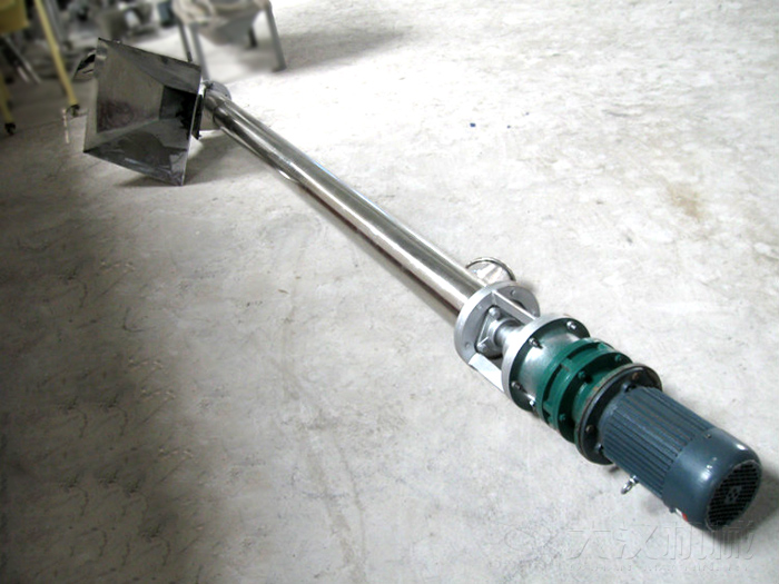 粮食螺旋输送机是利用旋转的螺旋叶片将粮食推移而进行输送,使物料与螺旋叶片一起旋转的力是物料自身重量和螺旋输送机机壳对物料的摩擦阻力。粮食在中间轴承的运移,则是依靠后面前进着的物料的推力。所以,粮食在螺旋输送机中的运送,完全是一种滑移运动。