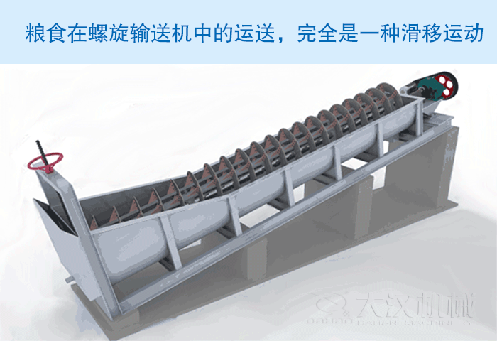 粮食螺旋输送机主要由驱动装置、头部装配、机壳、螺旋体、槽体衬板、进料口、出料口、机盖(需要时)、底座等组成。