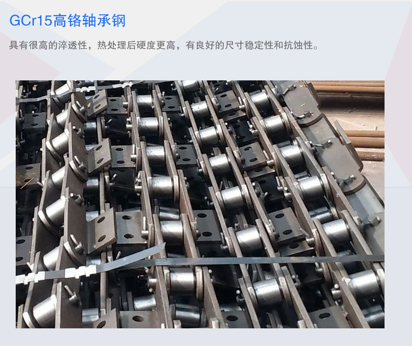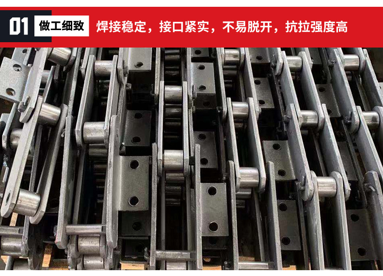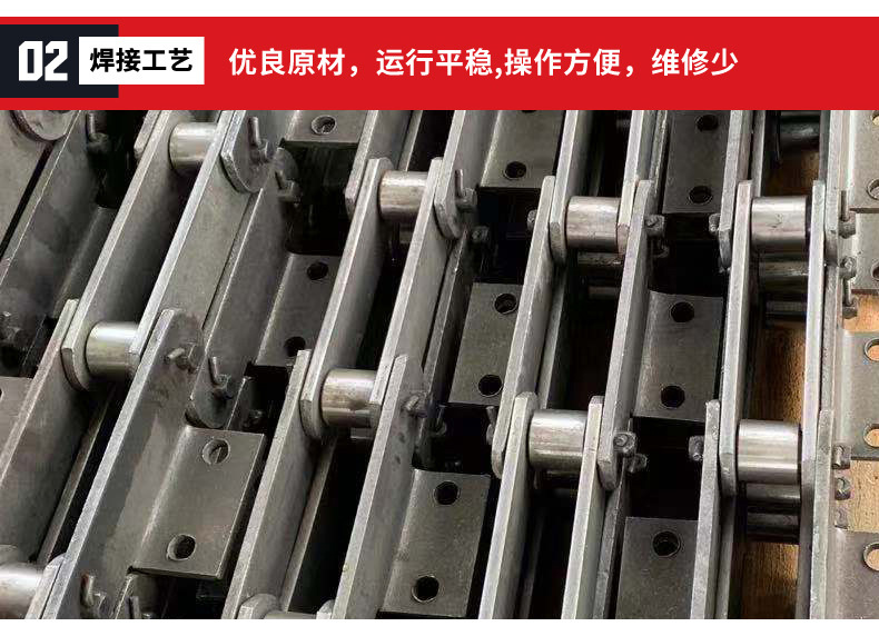 NE斗式提升机中都采用此种型号的链条,有NE15-NE800型号,NE15斗式提升机是单链,把板链用螺栓和料斗直接紧固在一起就行(NE板链上有固定的螺丝孔),NE30以上的斗式提升机都是双链条的,安装时在料斗的两侧平行摆好板链链条,在斗式提升机料斗的左右两侧分别用螺栓把链条和料斗逐个螺紧即可。