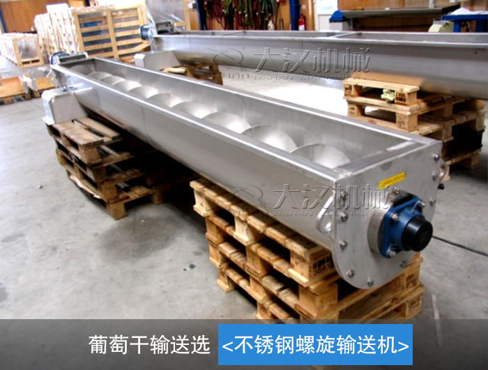 葡萄干作用食品行业物料,所以推荐您使用不锈钢材质制造的螺旋输送机进行输送。