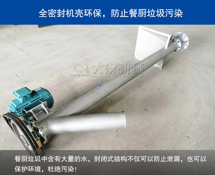 无轴螺旋输送机采用全封闭输送和易清洗的螺旋表面,全封闭的结构也可以保障可保证餐厨垃圾在输送过程中发生物料飞溅和泄漏问题,从而?;せ肪澄郎退臀锪喜皇芪廴尽⒉恍孤?。