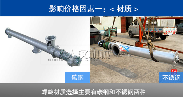 餐饮垃圾无轴螺旋输送机的材质有碳钢、不锈钢两种材质,不锈钢材质的价格要贵1倍左右,不锈钢的主要用于对输送环境要求高的行业,清洁度高,不会污染物料,使用时间长,造价也相对高。碳钢材质可以主要应用在一些对物料要求不是很严格或对,对于餐饮垃圾的输送您选择碳钢材质即可,在价格上也能便宜不少。