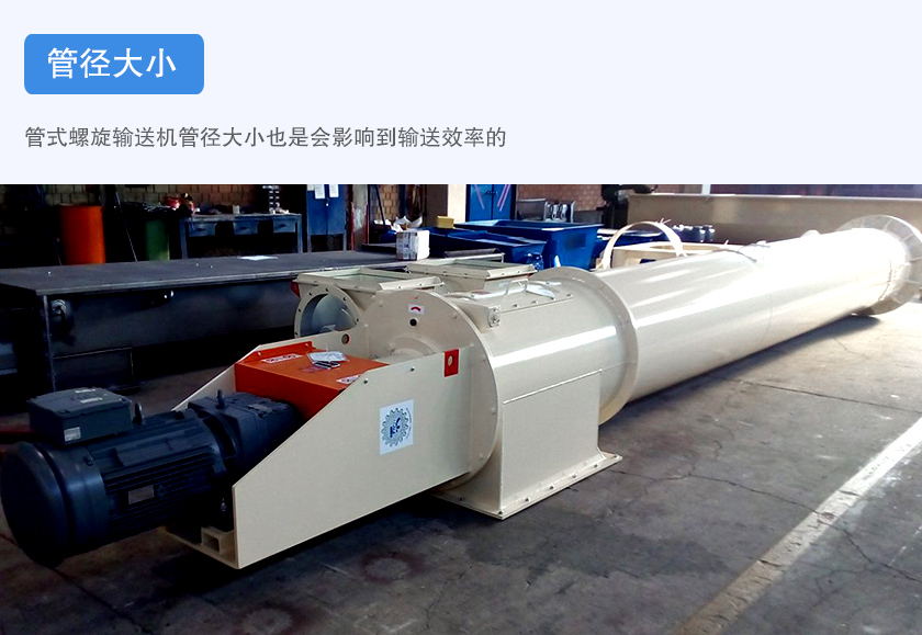管式螺旋输送机管径大小也是会影响到输送效率的。在一定条件下,管径大的管式螺旋输送机会比管径小的管式螺旋输送机输送效率高。