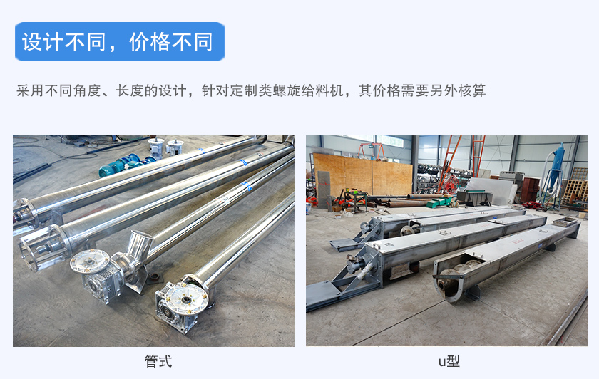 螺旋给料机可以针对用户要求采用不同角度、长度的设计,针对定制类螺旋给料机,其价格需要另外核算,不同设计对于螺旋给料机的用材成本和制造成本是不同的。